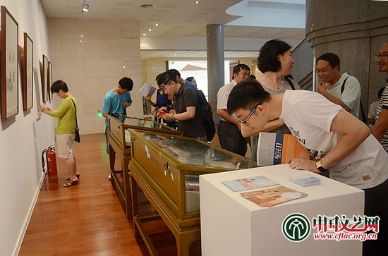 “中外版画、藏书票联展”现场观众观看作品 中国文艺网 黄远 摄
