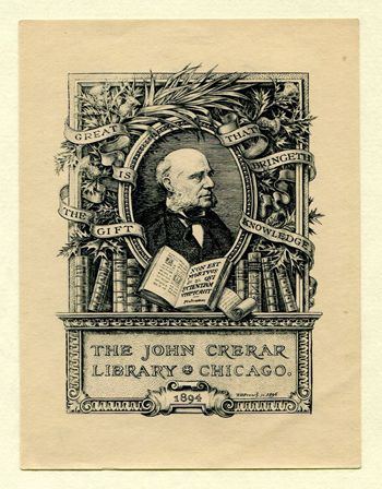 弗兰奇(Edwin Davis French,美国)雕版 约翰•科雷拉尔图书馆的藏书票 9×6.8cm 1894 吴建锋 收藏