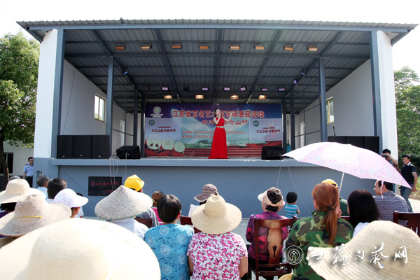 2011年,我省开展了领导干部下基层“三解三促”活动。按照省委要求,省文联选定了高淳县固城镇蒋山村作为“三解三促”联系点。那时的蒋山村由于地处偏僻,村民文化生活相对缺乏,文化设施相对简陋。省文联王慧芬等同志经过多次驻村入户的调研了解,根据实际情况确定了“五个一”具体帮扶内容,为村里修建了惠民大舞台,使村里开展文化活动有个良好的场所,就是当年省文联扶持一个文化项目的内容之一。其中,送一场文艺惠民演出给蒋山村村民项目已经持续了三个年头。