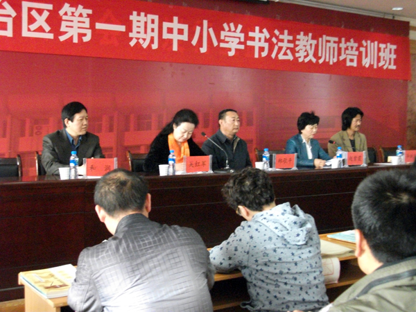 为弘扬中国书法传统艺术,提高中小学教师书法教学水平,促进书法教育的普及,由自治区教育厅主办,宁夏书协负责具体培训教学工作的2013年自治区第一期中小学书法教师培训班于4月20日在宁夏师资培训中心正式开班,宁夏文联党组书记、主席郑歌平,宁夏书协常务副主席李洪义出席了开班仪式。