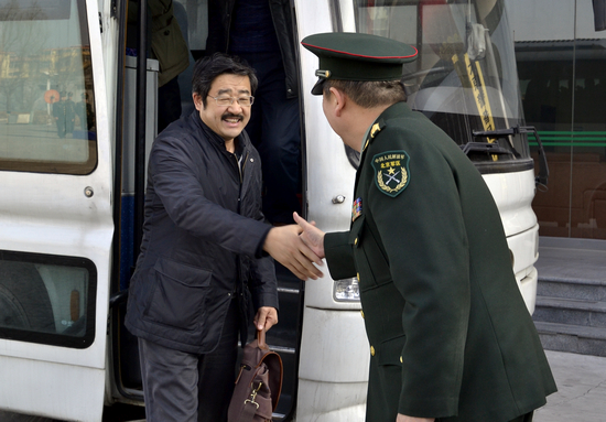 当一位战士拿到山西省政协常委、省文联党组书记、省书协副主席张根虎为他创作的“雄风万里”、“情韵书声”书法作品时喜悦之情难以抑制,感慨地说:“我平时也练习书法,今天能亲眼目睹这么多名家现场创作,并能得到张书记珍贵的墨迹,非常难得,我会好好学习和收藏这些作品。”