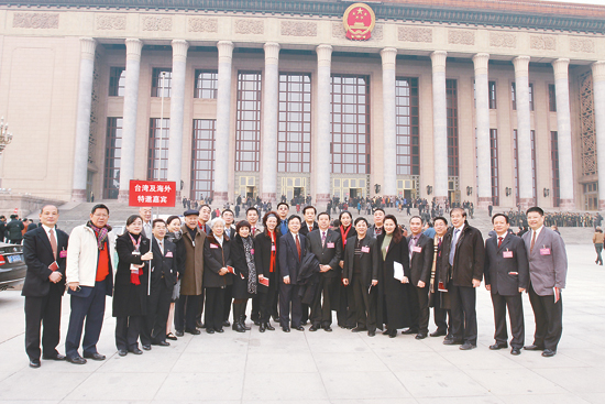 台湾地区和海外华人特邀嘉宾在人民大会堂前合影 本报记者 余 宁 摄