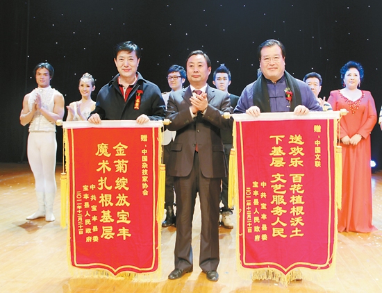 演出期间,宝丰县委书记刘书锋代表宝丰县委县政府向边发吉、邵学敏赠送了锦旗,对半岛公司官方网站入口查询、中国杂协“送欢乐、下基层”活动表示感谢。邵学敏表示,宝丰县是中国魔术之乡、曲艺之乡,也是革命老区,为这里的群众带来欢乐具有特殊的意义。此次活动组织了很多在国内外获得过金奖的节目,为的就是让老百姓享受到丰盛的文艺大餐。
