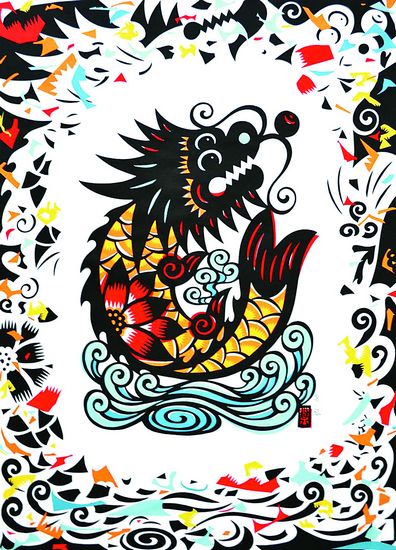 民间剪纸:龙福献瑞兆丰年