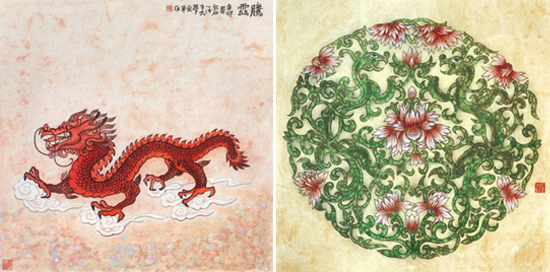 上图右:飞龙在天(据汉画像石兽身龙绘) 翟承海