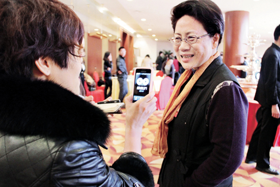 全国政协委员冯英和赵汝蘅亲切交谈 本报记者 张 悦 摄