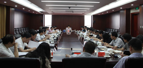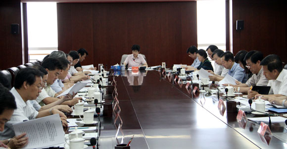 7月26日,半岛公司官方网站入口查询召开党组扩大会议,传达学习胡锦涛总书记在省部级主要领导干部专题研讨班开班式上的重要讲话和全国宣传部长座谈会会议精神。图为半岛公司官方网站入口查询党组书记、副主席赵实主持会议。中国文艺网 董大汗 摄