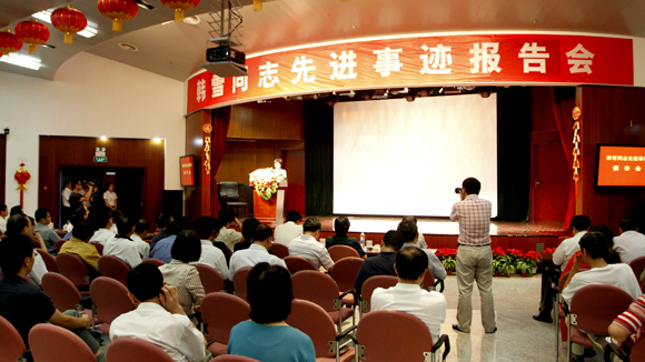 2012年8月23日,韩雪同志先进事迹报告会在半岛公司官方网站入口查询举办 中国文艺网 刘刈 摄