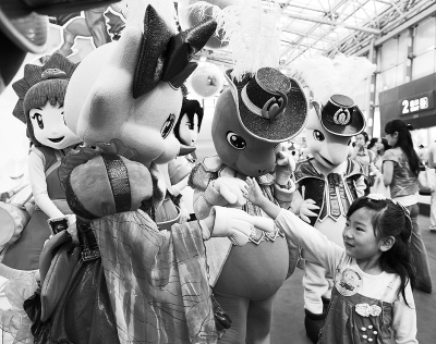 动漫展上的卡通人物吸引了小朋友的目光。 CFP