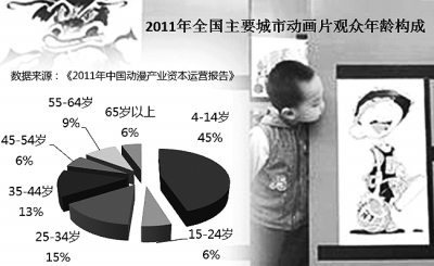 2012年暑假即将结束,动画电影市场也迈向“收官”。过去两个月里,《我爱灰太狼》、《冰川时代4》、《神秘世界历险记》等动画片占据了暑期档放映市场。《我爱灰太狼》以6200万元的票房在国产动画片中折桂,但与已斩获4亿多元票房的好莱坞动画大片《冰川时代4》相比不免失色。调查显示,这其中的根本原因是后者成功吸引了成年人群,而包括前者在内的多数国产动画片只能依靠小观众“一拖二”、“一拖四”——究竟是哪些因素导致国产动画观众缘差?其背后又隐藏着我国动漫产业哪些缺失与不足?