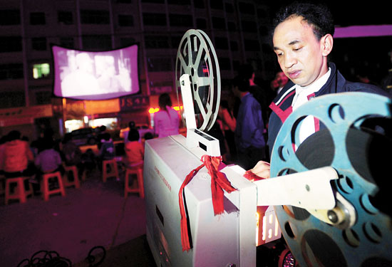 马恭志为群众放映电影