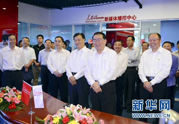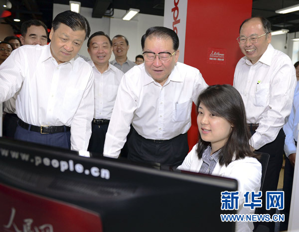 9月14日,中共中央政治局常委李长春在人民日报社调研。中共中央政治局委员、中央书记处书记、中宣部部长刘云山一同调研。这是李长春在人民网调研。 新华社记者谢环驰摄