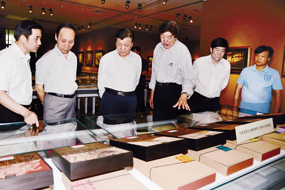 作为文化遗产保护的倡导者、身体力行者和教育实践者的冯骥才,是近十年来为大众熟悉的一张“新面孔”。刘云山仔细观看了冯骥才近年来在文化遗产保护和教育领域所取得的宝贵成果,还就木版年画的制作工艺与传承人的保护、唐卡的产地与流派、史诗《亚鲁王》的发现定位等问题与冯骥才不时交流自己的看法。特别在看到冯骥才早年致力于天津老城保护所取得的一系列成果时,刘云山说,冯骥才是知识界中具有“文化先觉”的一位,对于城市文化保护,冯骥才一直“大声疾呼”、身体力行,致力唤起国人的文化自省与文化自尊。他还卖画筹款,建立基金会,支持处于弱势的文化遗产抢救与保护。此种精神令人感动,值得嘉许和学习。