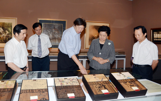9月17日下午,中共中央政治局委员、国务委员刘延东来到北京画院,饶有兴致地参观了正在这里举办的“四驾马车——冯骥才的绘画、文学、文化遗产保护与教育”展览。图为刘延东在王文章、李前光、冯骥才、罗杨等陪同下参观展览。中国文艺网 张志勇 摄