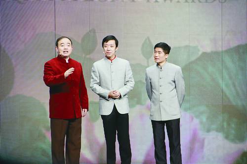 姜昆、戴志诚、赵津生、周炜、郑健在颁奖晚会上表演