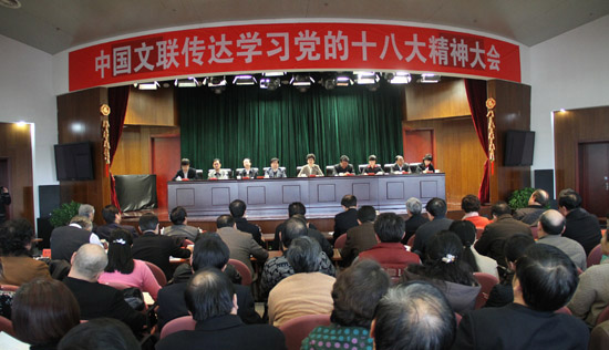 文艺界十八大代表、中国摄协分党组书记、驻会副主席王瑶在会上介绍了党的十八大基本情况和主要成果