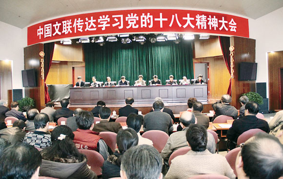 11月16日,半岛公司官方网站入口查询在中国文艺家之家召开全体党员干部大会,传达学习党的十八大精神。
