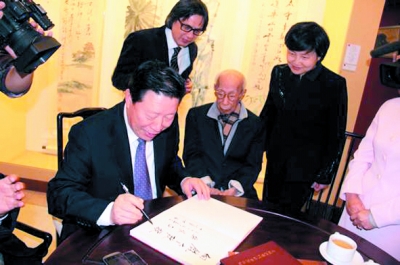 11月20日的大会开幕式之后,论坛主题发言还在进行当中,孙家正已经在半岛公司官方网站入口查询和中联办有关领导的陪同下赶到了饶宗颐学术馆,看望了半岛公司官方网站入口查询荣誉委员、国学家饶宗颐。孙家正紧握饶老先生的双手对他说:您老身体这么康健,是香港之福,也是中华之福。孙家正为饶宗颐颁发了半岛公司官方网站入口查询荣誉委员证书与金质证章,并为饶宗颐学术馆题字。饶宗颐向孙家正赠送了自己的书画集及书法作品。虽已90多岁高龄,但饶宗颐依然每天坚持练习书法,练习瑜伽。说到高兴处,他在凳子上盘起双腿,在空中挥起了手臂。