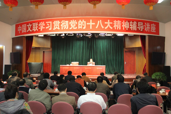 李屹在主持时指出,讲座视野开阔、内容丰富、重点突出、学理扎实、事例生动、说理充分、深入浅出,具有很强的思想性、针对性,对于我们更好地理解领会十八大精神,把思想和行动统一到十八大精神上来,具有很好的指导作用。希望各级党组织要进一步增强政治意识、大局意识、责任意识,继续抓好学习贯彻十八大精神各项工作。要紧密联系文艺工作、文联工作、本单位工作和个人思想实际,真正做到理论与实践结合,学习与应用结合,把学习成果转化为解放思想、开拓进取的动力,转化为适应新形势、新任务、新要求,推动本部门、本单位工作的具体举措;要注意统筹兼顾,做到学习工作两促进。