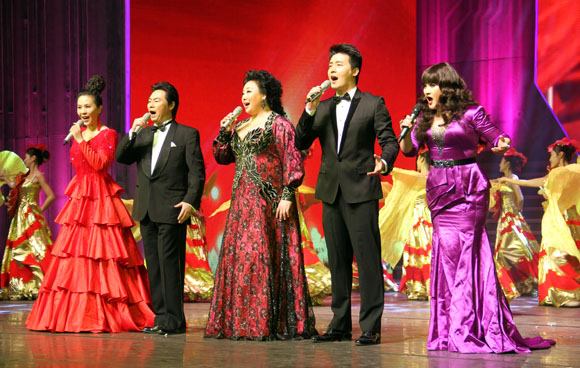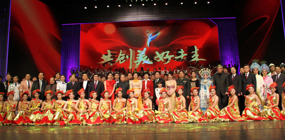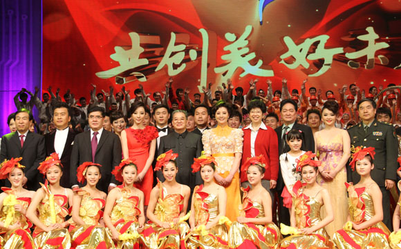 “阳光路上,无限风光,前进的脚步日夜兼程,不可阻挡;阳光路上,旗帜飞扬,科学发展为和谐的中国,引领方向……”在郑咏、幺红、张英席等著名歌唱家合唱的《阳光路上》的歌声中,晚会圆满落下帷幕。