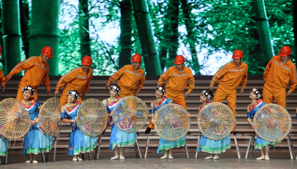 中石油长庆油田公司选送的音舞快板《高举旗帜向未来》