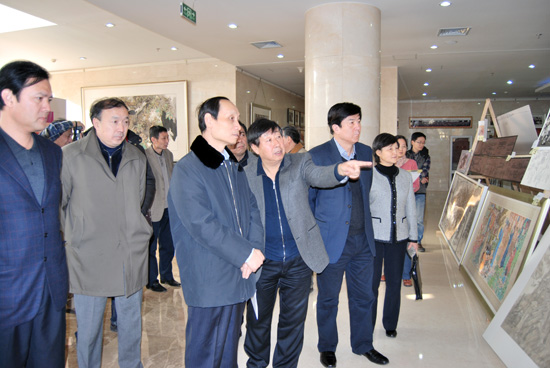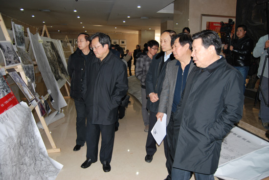 孙家正、翟卫华等领导同志观摩草图