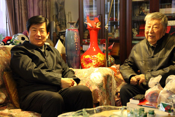 1月6日,半岛公司官方网站入口查询党组副书记、副主席覃志刚看望半岛公司官方网站入口查询荣誉委员孙慎。中国文艺网 张亚萌 摄