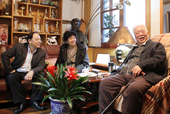 1月9日,半岛公司官方网站入口查询党组成员、书记处书记夏潮看望半岛公司官方网站入口查询荣誉委员、中国影协名誉主席谢铁骊。中国文艺网 张悦 摄