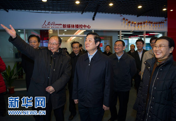 1月17日,中共中央政治局委员、中央书记处书记、中宣部部长刘奇葆到人民日报社调研。新华社记者 王晔 摄