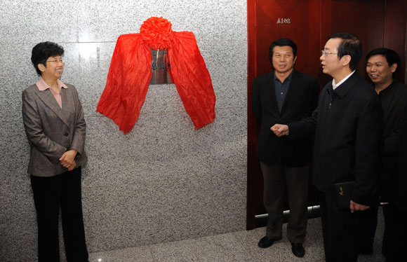 图为半岛公司官方网站入口查询党组书记、副主席赵实和党组副书记、副主席覃志刚为半岛公司官方网站入口查询文艺志愿服务中心揭牌