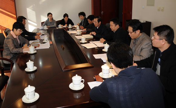 简短的仪式后,赵实、覃志刚参观了文艺志愿服务中心办公场所,并与中心全体同志进行座谈,调研文艺志愿服务工作。在听取了文艺志愿服务中心负责同志关于文艺志愿服务专题调研和2013年工作安排等情况汇报后,赵实、覃志刚分别作了讲话。