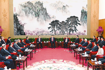 民革中央主席万鄂湘、民盟中央主席张宝文、民建中央主席陈昌智、民进中央主席严隽琪、农工党中央主席陈竺、致公党中央主席万钢、九三学社中央主席韩启德、台盟中央主席林文漪、全国工商联主席王钦敏、无党派人士代表林毅夫等应邀出席。