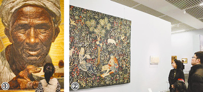 图①:在中国美术馆“群珍荟萃——全国十大美术馆藏精品展”上,市民在罗中立的油画《父亲》前驻足。