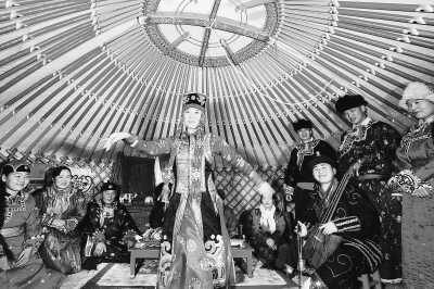 2月14日,大年初五,内蒙古东乌珠穆沁旗乌兰牧骑的队员们冒着严寒来到牧民家,在蒙古包里为牧民表演舞蹈、呼麦、长调等各种传统文艺节目,为他们送来节日的欢乐和新春的祝福。记者 贺 勇摄
