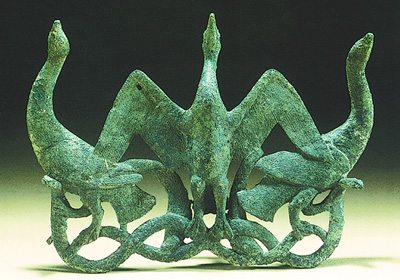西汉三水鸟铜扣饰,云南省博物馆收藏。 王 露摄