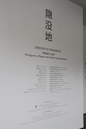 2013年4月7日,“《隐没地》——上圈组村民与艺术家的影像实验”大型摄影展在北京今日美术馆开幕。本次展览由今日美术馆与中国摄影家协会、新华社中国国际文化影像传播有限公司联合主办。