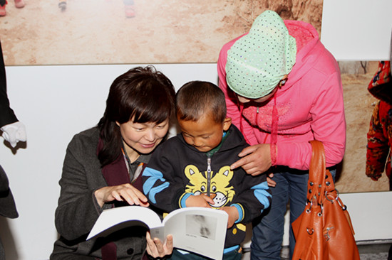 中国摄影家协会主席王瑶向上圈组的孩子赠送图书 单鸣 摄