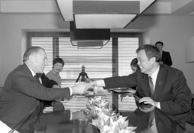 26日上午11时,国家文物局副局长宋新潮、博物馆与社会文物司司长段勇在北京会晤了法国PPR集团董事长兼首席执行官弗朗索瓦-亨利 皮诺先生。皮诺先生代表皮诺家族表示,将向中国政府捐赠流失海外的圆明园十二大水法中的青铜鼠首和兔首。