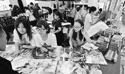 在第九届中国国际动漫节的展台前,一些影视动画的衍生产品受到了参观者的欢迎。 人民图片
