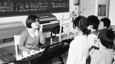 在甘肃陇南支教的90后女孩周可欣教孩子们唱歌 资料图片