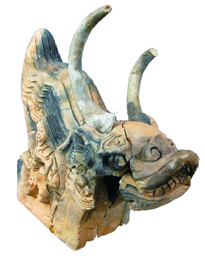 在风雨苍黄中走过700余年光阴的海龙囤,仍有许多待解的谜团。如今,东西两端的9道关隘和环囤城墙依然屹立,囤内建筑却已多淹没于荆棘丛中、黄土之下,仅有少量石砌的建筑基址若隐若现。对这些废墟,民间流传着“老王宫”“新王宫”“金银库”“水牢”等种种名称与传说。据传,囤内约1.6平方公里的范围内原有“三十二大街七十二小巷”。“老王宫”是白龙太子的宫殿,白龙太子是早于杨应龙的人物,其族在此居住18代。“新王宫”则是杨应龙的宫殿。不论传说的真伪,散落于地表的饰有精致莲花的瓦当,从屋脊坠落的各种陶兽碎片,纵横交错的石质基础,都已充分表明囤内原有建筑的恢弘瑰丽,错落有致,气宇轩昂。