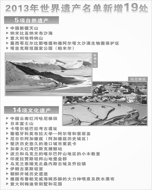 本届世界遗产大会上,中国新疆天山和云南红河哈尼梯田被列为世界遗产。索安说,中国现在已经有45处世界遗产,成为全球排名第二的世界遗产大国,感谢中国对这些世界遗产的保护。
