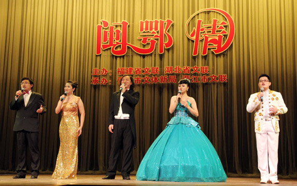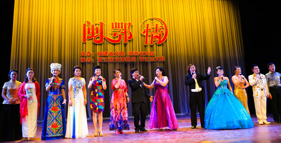 演出中,鄂闽两地艺术家同台高歌。傅正明/摄