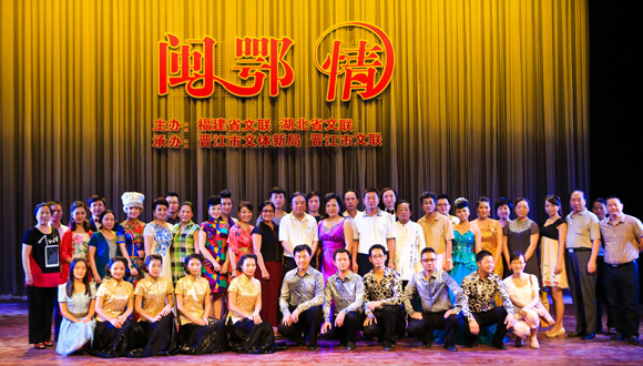 演出结束后,参演的鄂闽两地艺术家及采风团成员合影留念。傅正明/摄