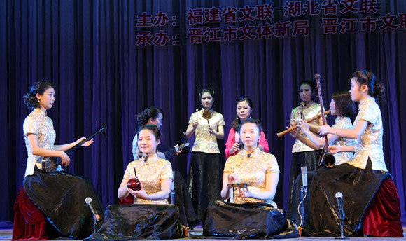 晋江市南音协会陈小红、丁美姗等南音对唱《春光明媚》。中国艺术报 乔燕冰/摄