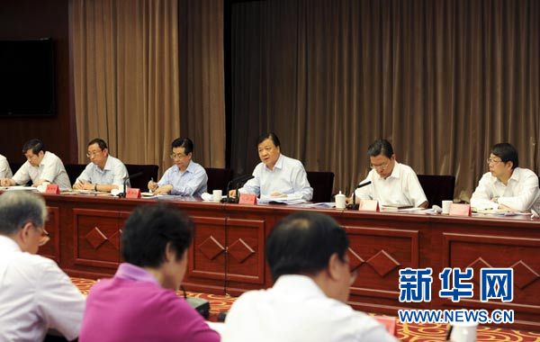 7月24日,中共中央政治局常委、中央党的群众路线教育实践活动领导小组组长刘云山在北京出席党的群众路线教育实践活动中央督导组工作座谈会并讲话。新华社记者 饶爱民 摄
