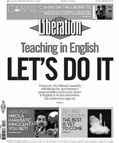 法国《解放报》5月21日的封面强力支持允许大学以英语教学(资料图片)