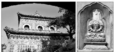 智慧海外景(左图)和受损佛像。图/CFP