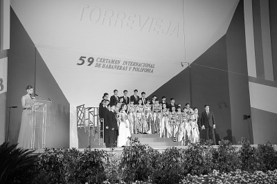 北京物资学院学生合唱团在西班牙托雷维耶哈举行的第五十九届国际哈巴涅拉及复调合唱比赛中获得“复调亚军”和“最佳作品演唱奖”两个奖项。图为比赛现场。