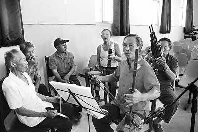 周四沟村乡村剧团成员在演奏。(资料图片)